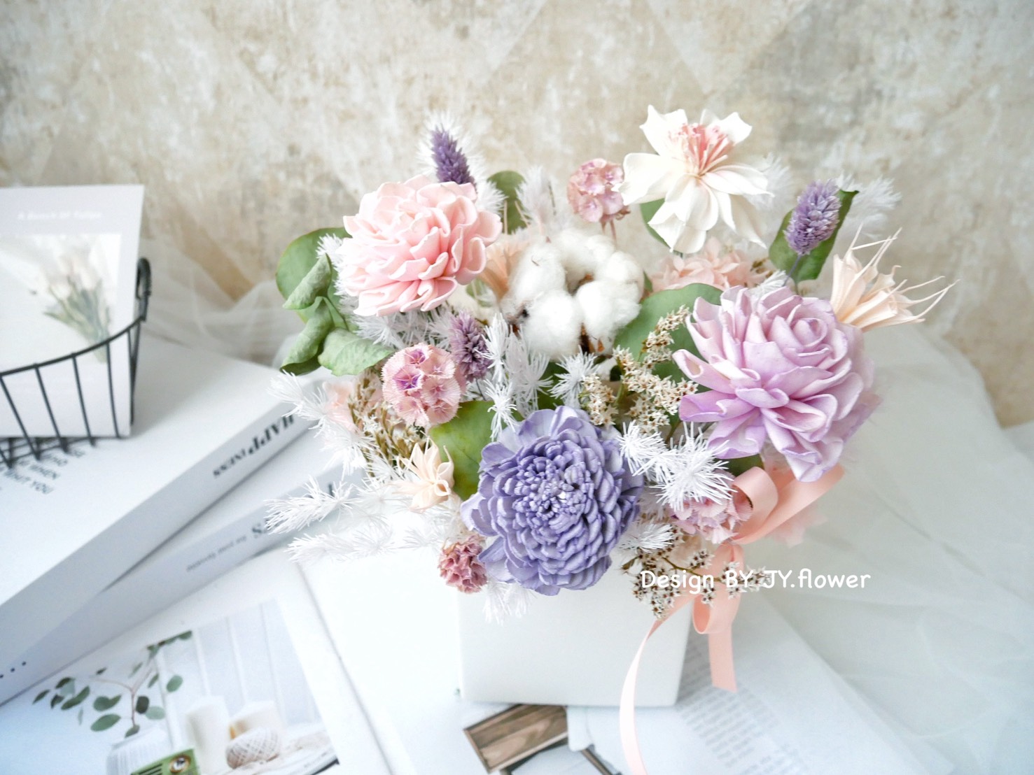 【甜蜜夢境】方盆乾燥花盆花