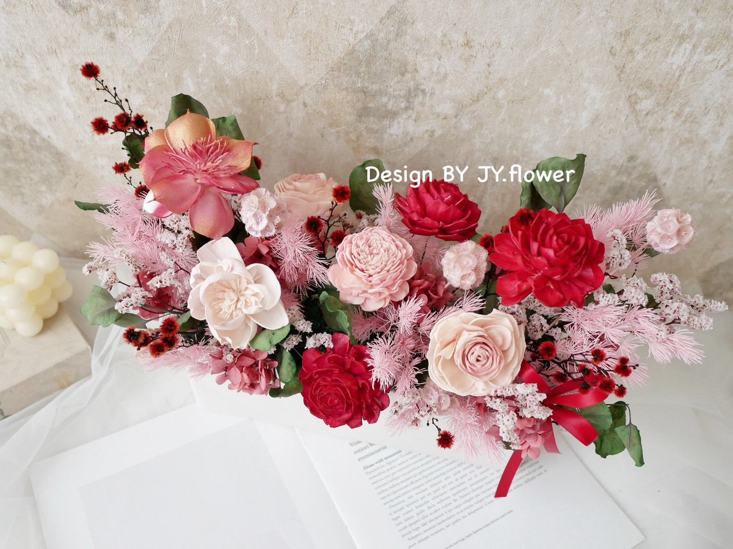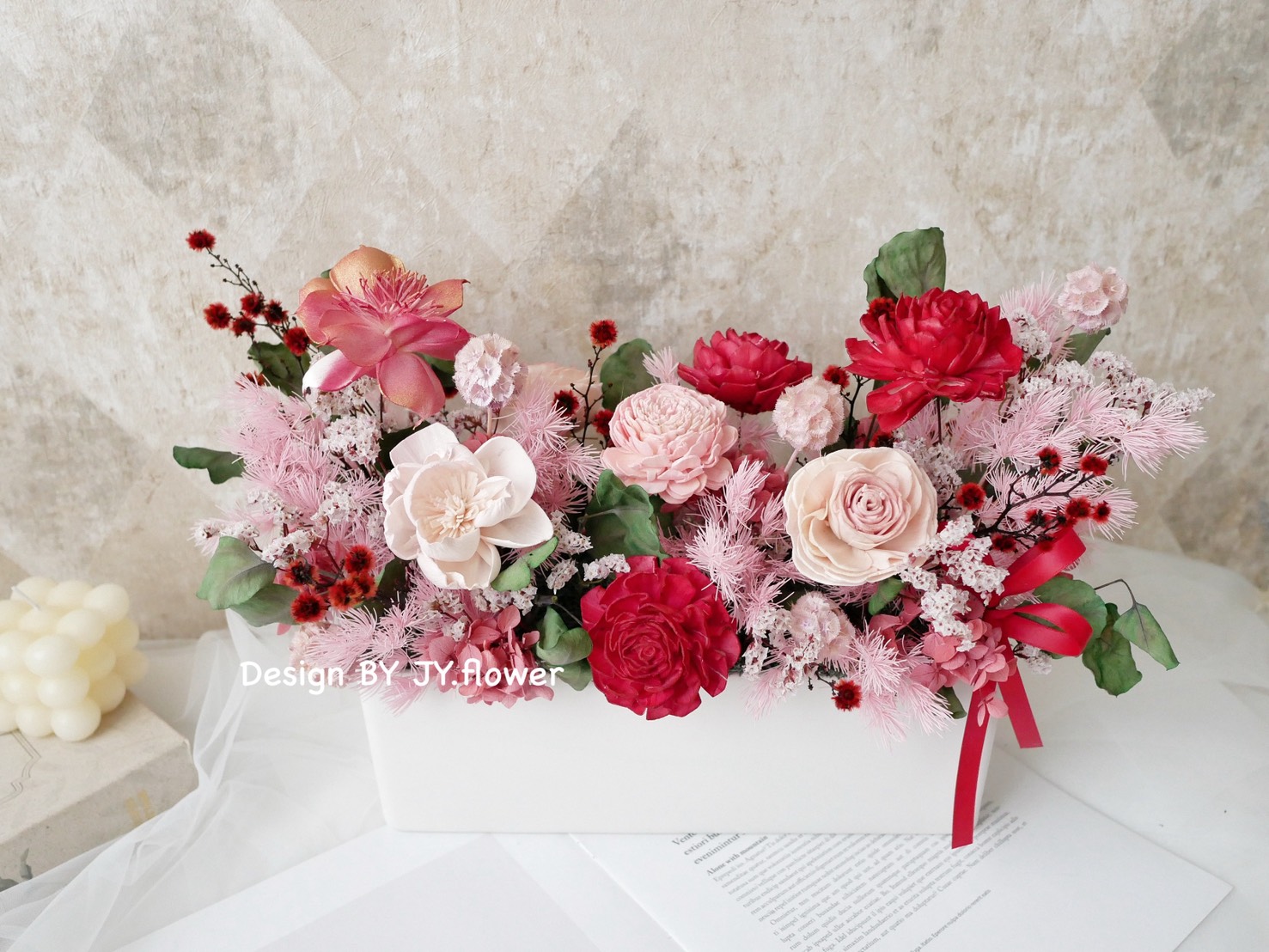 ◾ 可保存時間約為1-2年,最佳觀賞期為製作好後半年到一年的時間,之後隨時間拉長,可能有部分花朵會有褪色或是掉落的情況產生