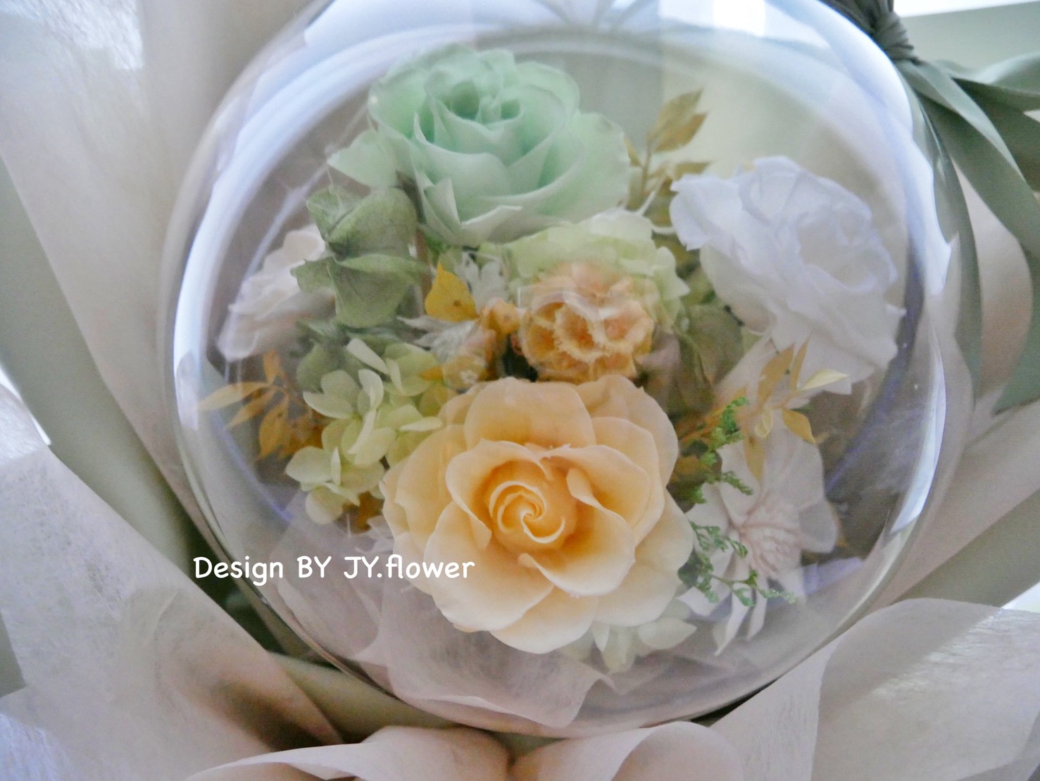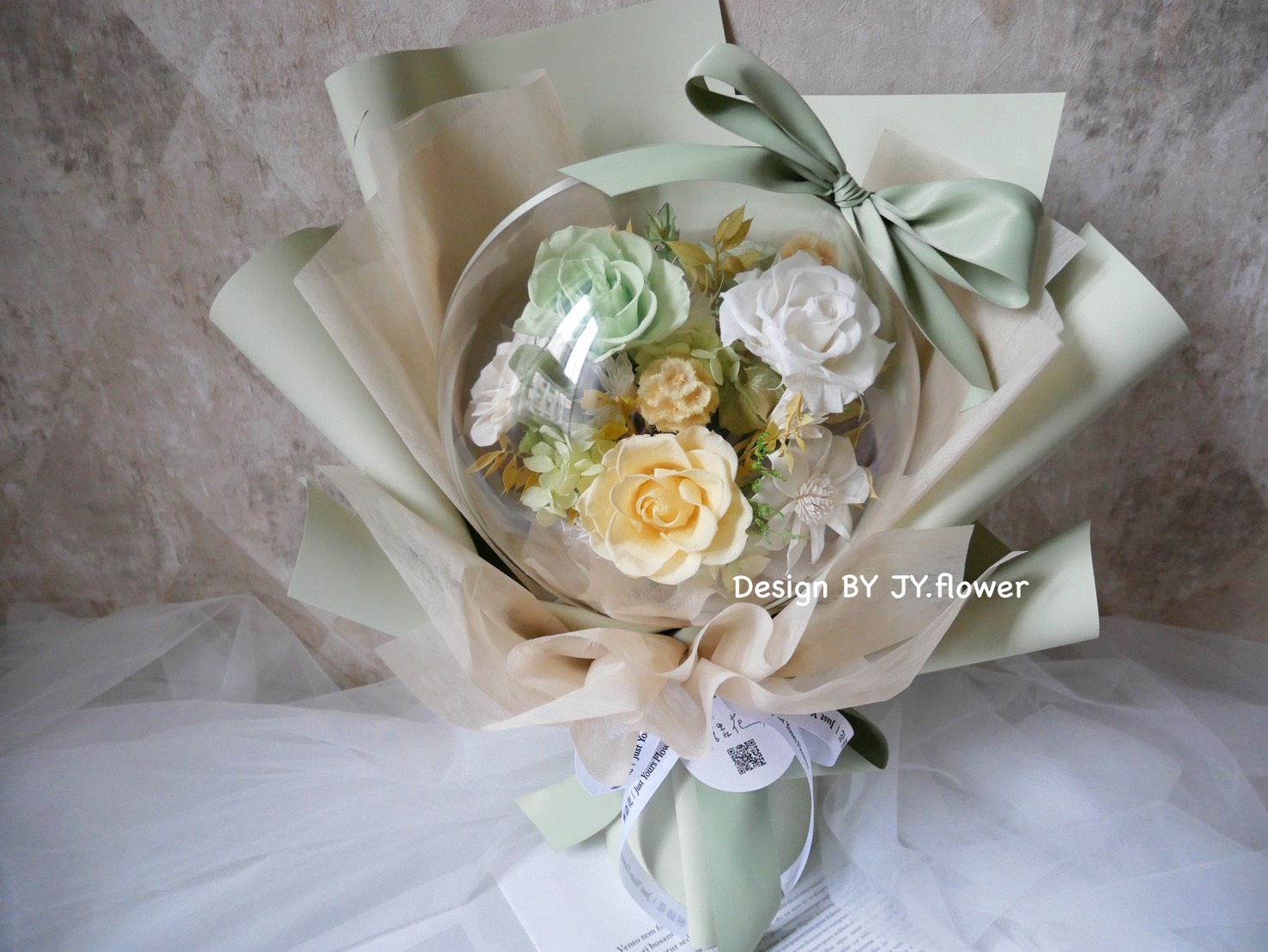 尺寸|使用直徑20cm壓克力球,花束含包裝寬約40cm,高約60cm