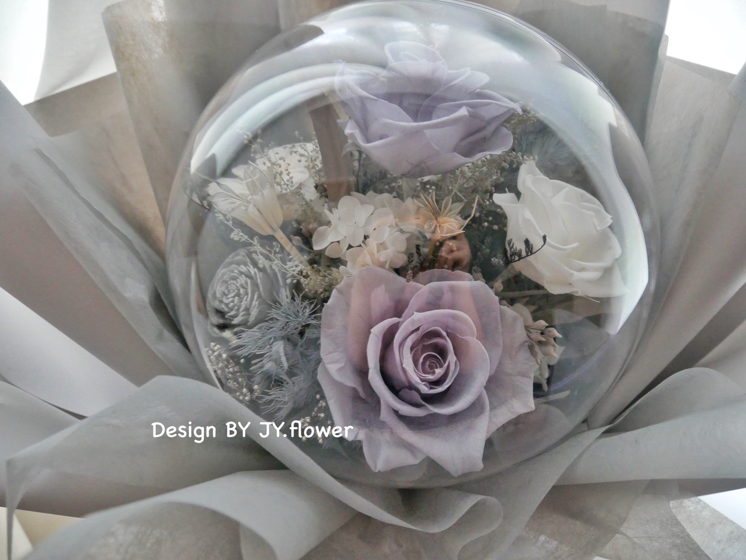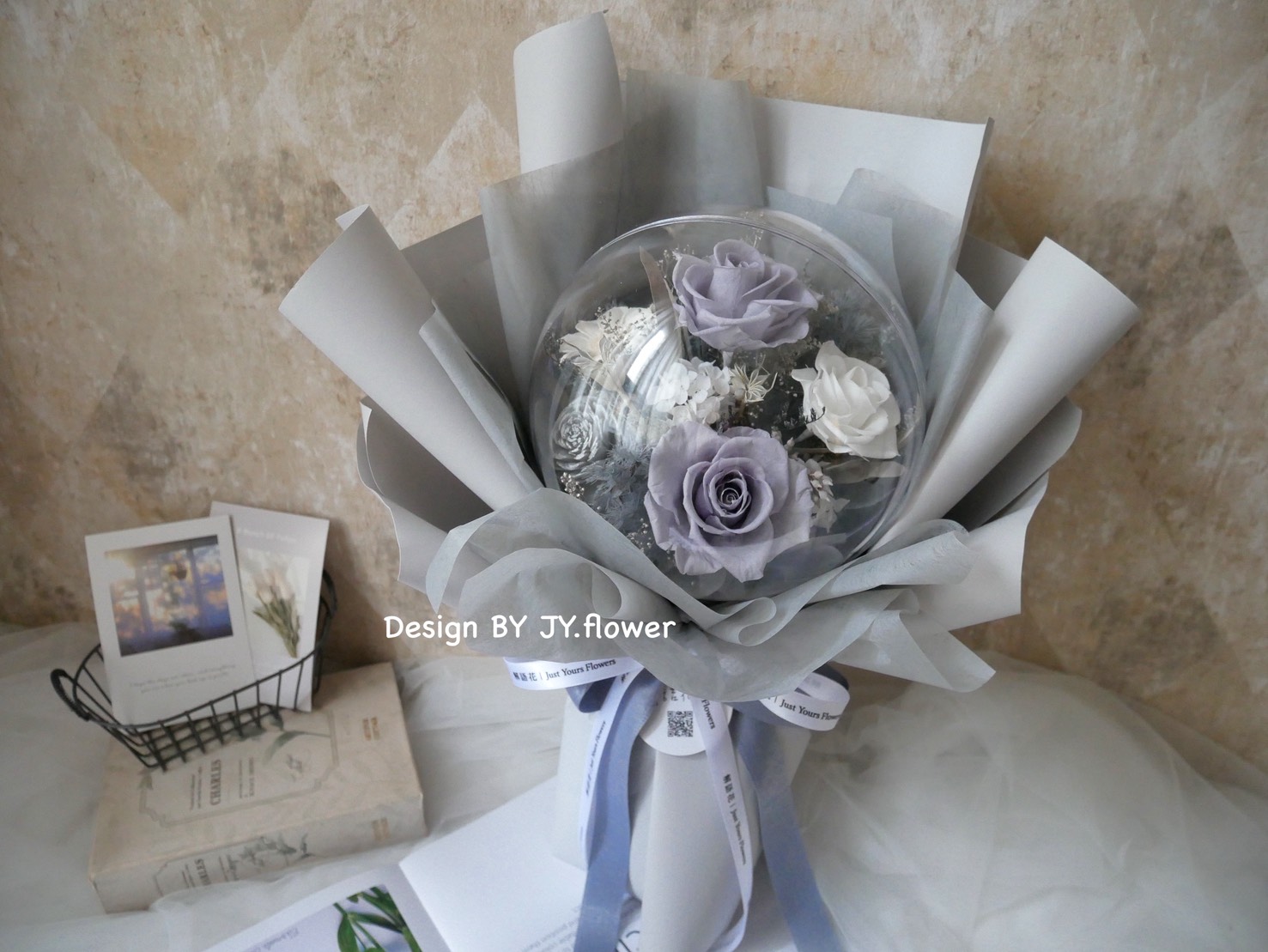 【煙白霧灰】波波球大款豐盛版永生玫瑰花束