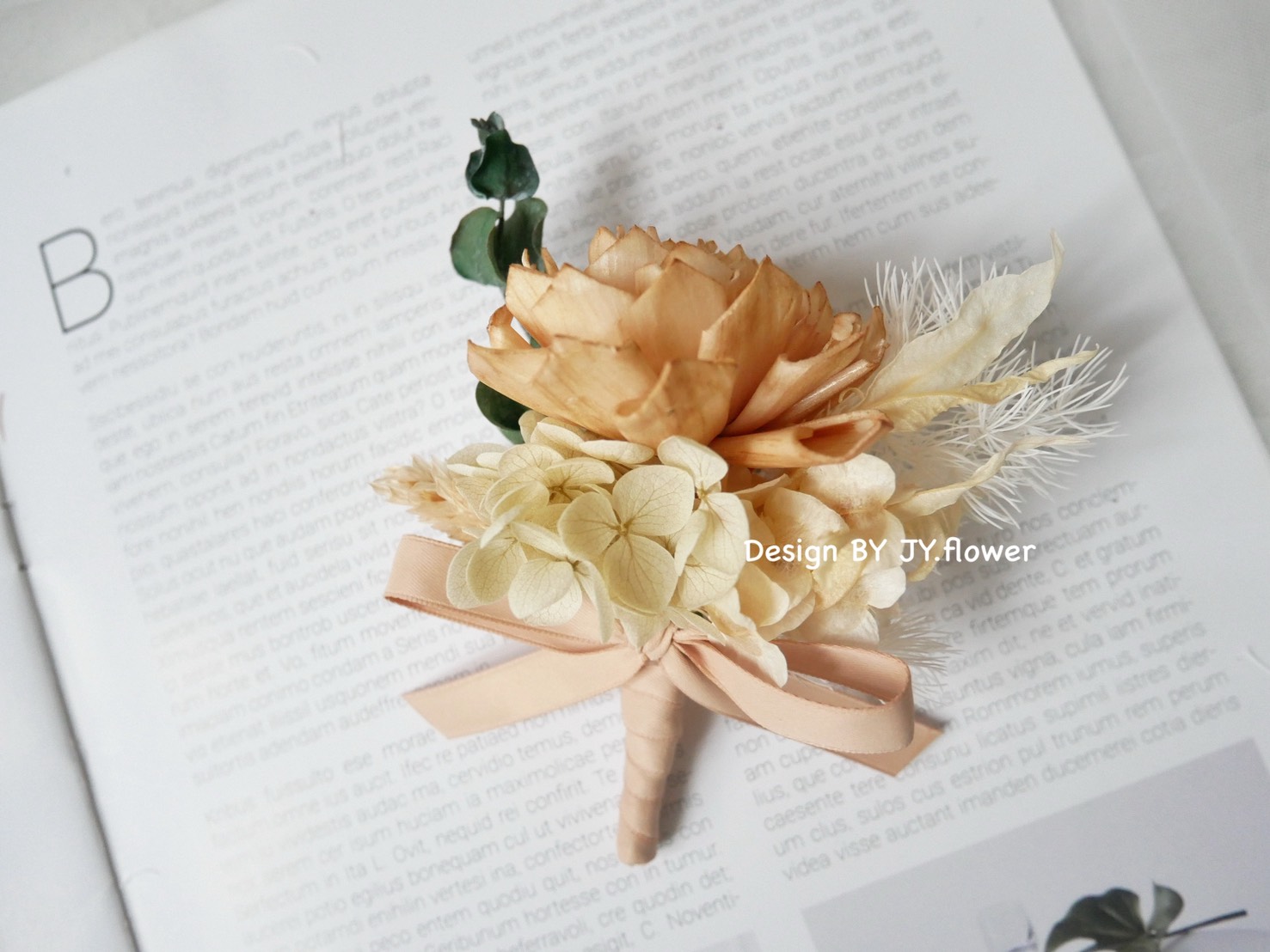 主婚人/招待婚禮胸花,享索拉乾燥胸花優惠價$300/個(原價$390),色系可客製調整