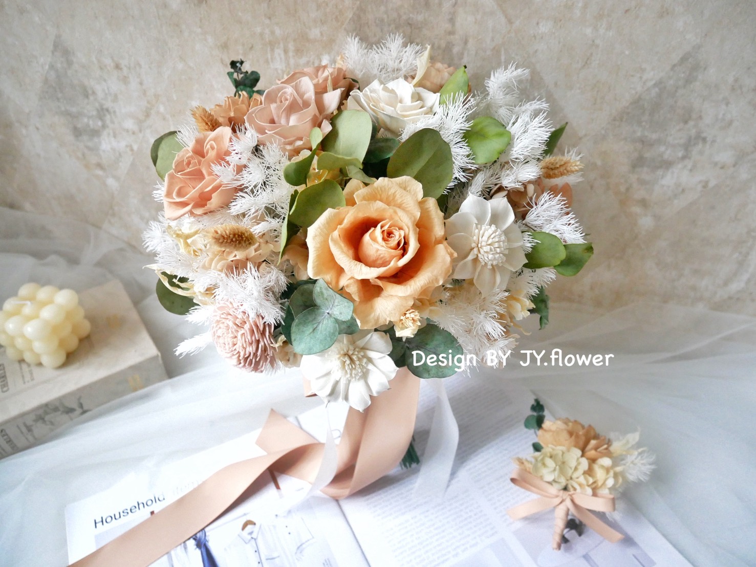 1. 凡訂購捧花之新娘,享同款索拉乾燥新郎胸花加購價$150(原價$390)
