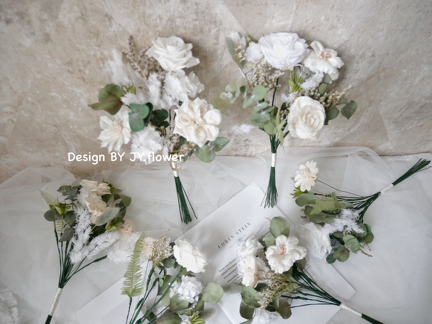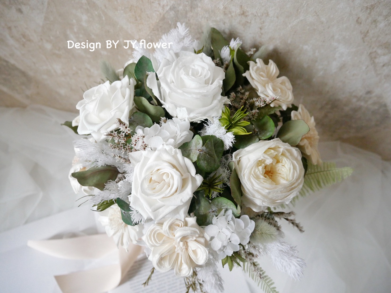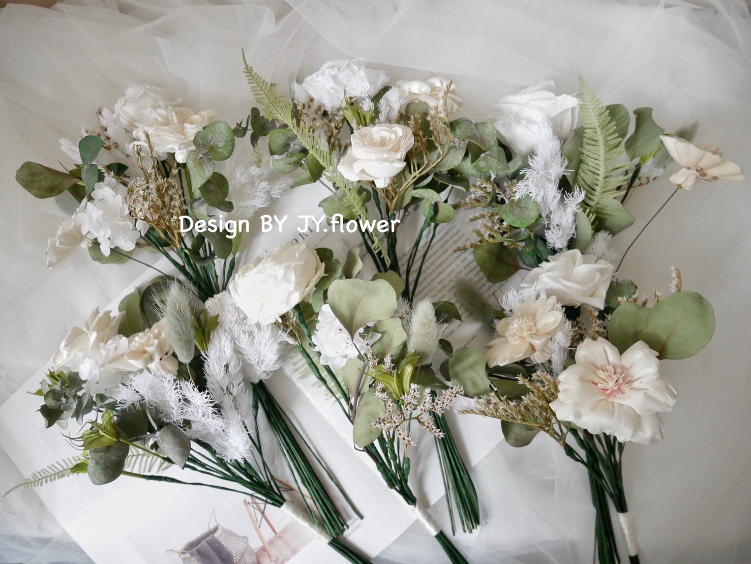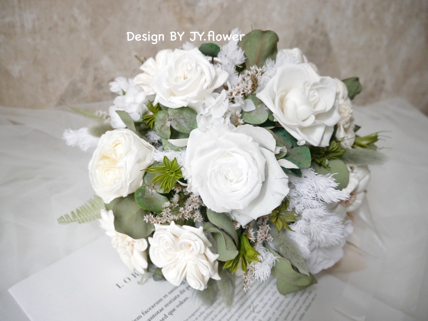 自然型手綁不凋花分束捧花【純粹漾白】