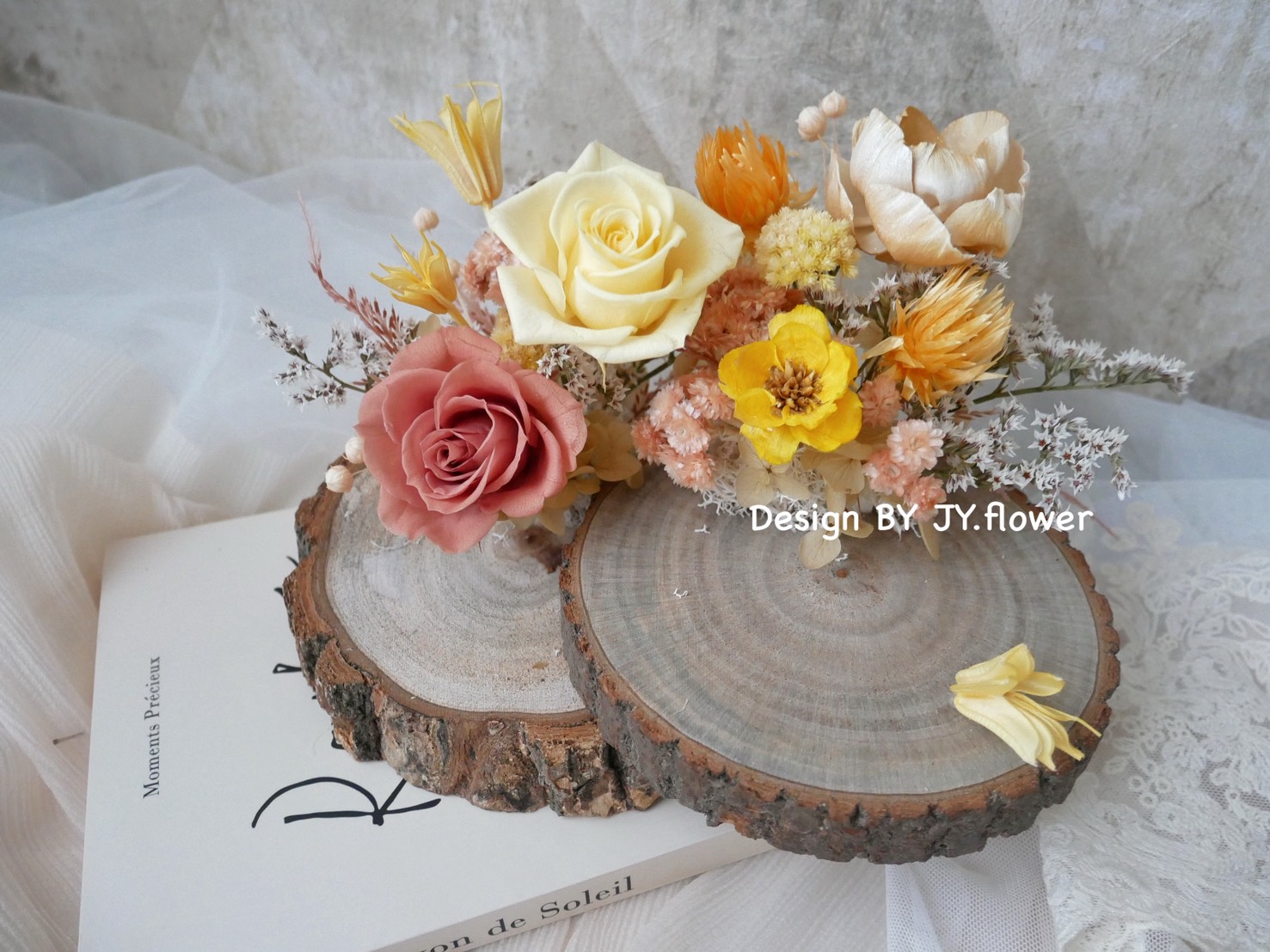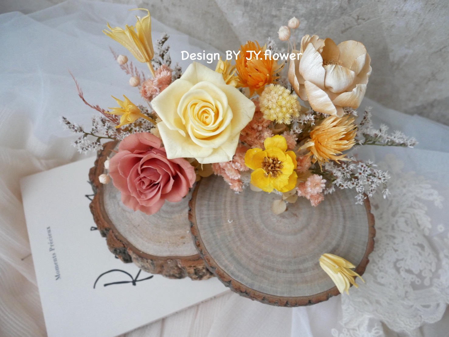 【暖杏】雙層木片永生玫瑰名片座