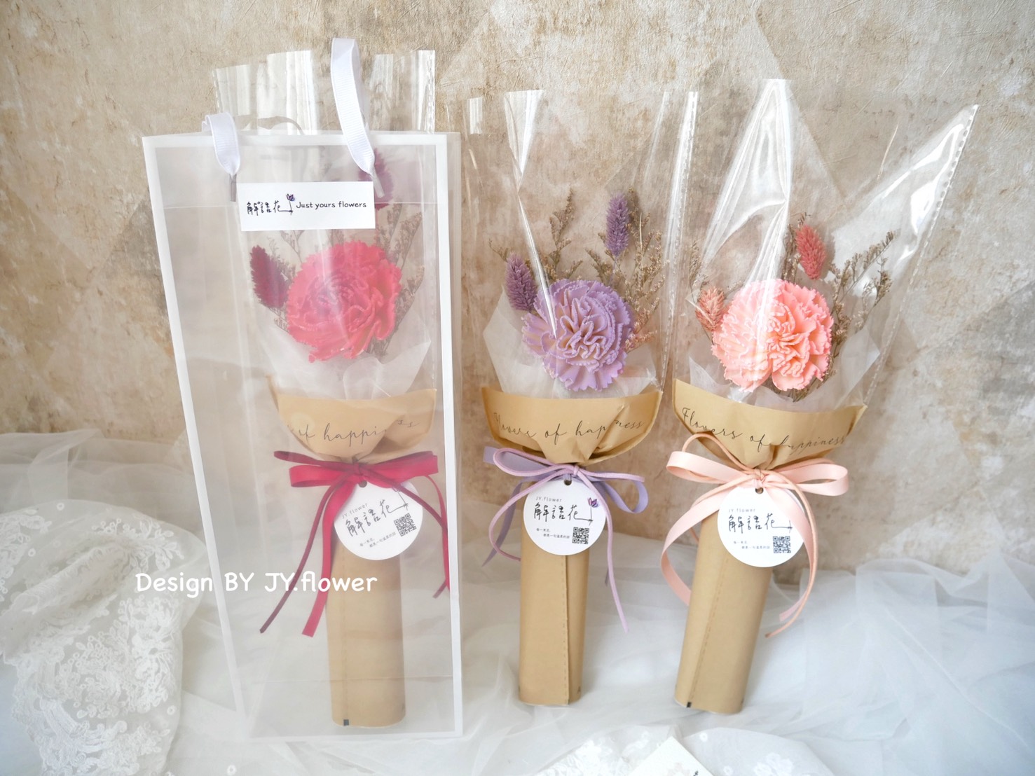 母親節花禮【單支索拉康乃馨乾燥花束】